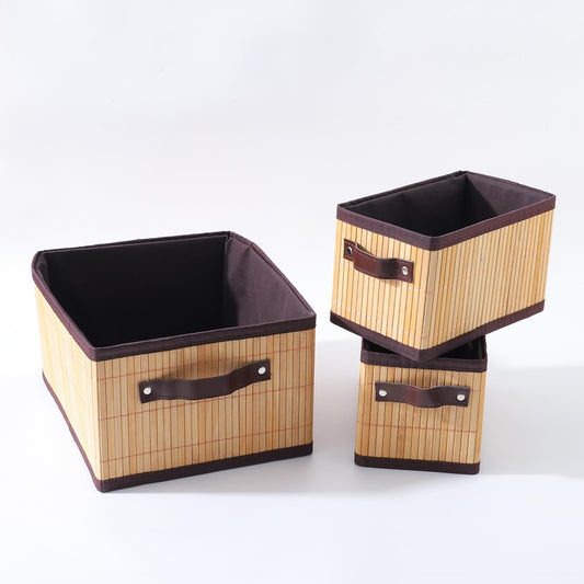 Homestic Pack of 3 Storage Basket | Bamboo Cloth Storage Basket | Storage Basket for Clothes-Toys | Natural Bamboo Cube Storage Basket | Foldable & Durable | SPYLH1001 | Brown