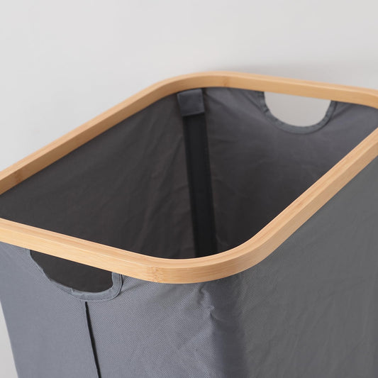 Laundry Basket|Bamboo Frame Laundry Basket & Polyester Material|Storage Organizer|Collapsible Design|Netted Lightweight Laundry Bag|10 (H) X 22 (W) Inch, Grey