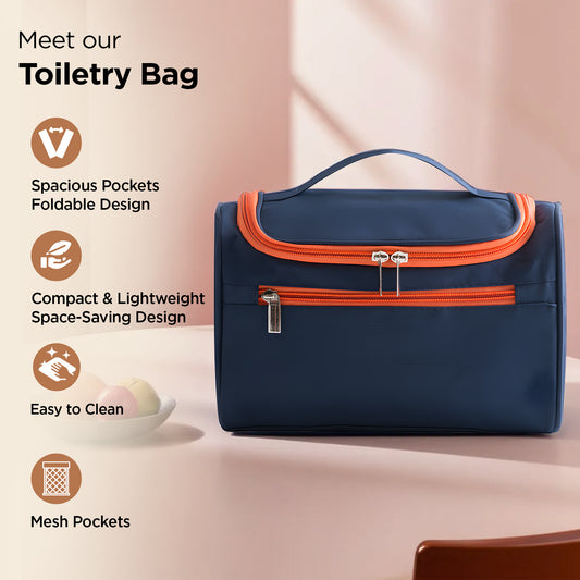 Space Saver Travel Organizer & Pouch | Toiletry Bag with Hook | Hanging Dopp Kit for Men & Cosmetics Pouch for Women | Waterproof (Navy Blue)