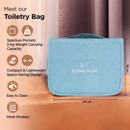 Space Saver Travel Organizer & Pouch | Toiletry Bag with Hook | Hanging Dopp Kit for Men & Cosmetics Pouch for Women | Waterproof (Light Blue)