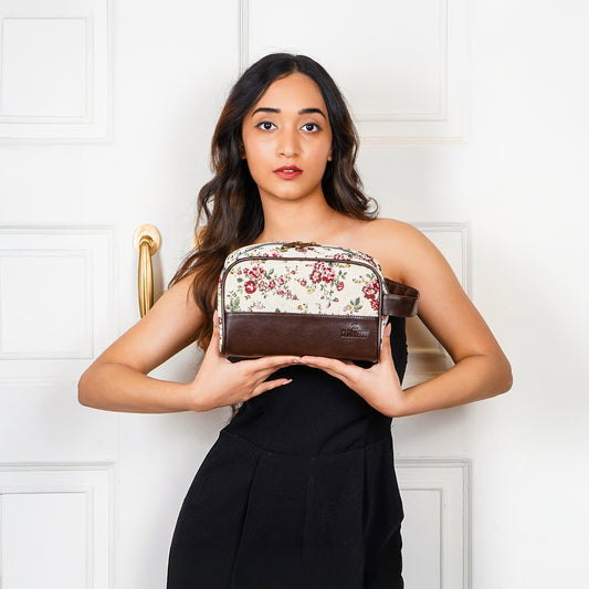 The Flossy Multipurpose Tapestry Travel Pouch Toiletry Bag Shaving Kit Bag for Men Make-Up Pouch for Women Toiletry Bag for Men Travel Kit for Men & Women (White-Floral)