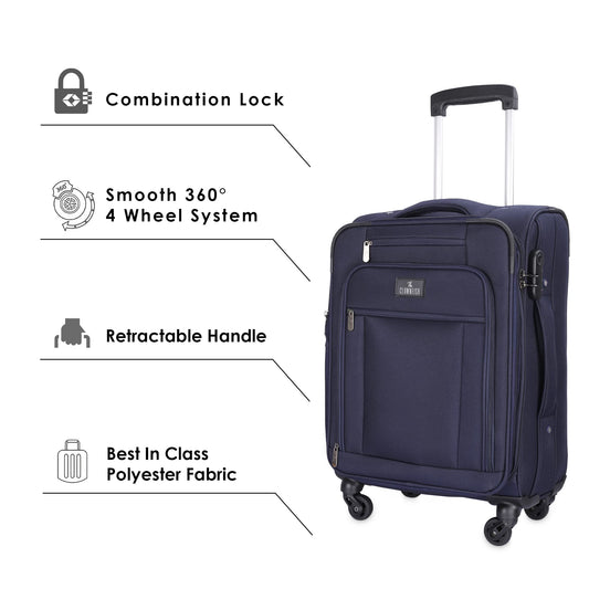 THE CLOWNFISH Abraham Luggage Polyester Soft Case Expandable Capacity Suitcase Four Wheel Trolley Bag - Navy Blue (57 cm, 22 inch)