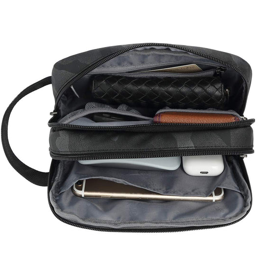 Toilerty bag, Shaving Kit, Cosmetic Bag For Travel Accessories With 3 Zipper Comparments & Carrying Strip (Maroon)-HS43KUBMART26615