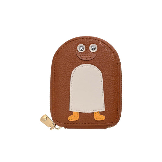 Penguins PU Credit Card Case Holder Purse, Coin Pocket Wallet for Women with Zip | Portable Cute Mini Wallet for Girls | Hand Wallet for College Girls | KS-3, Tan