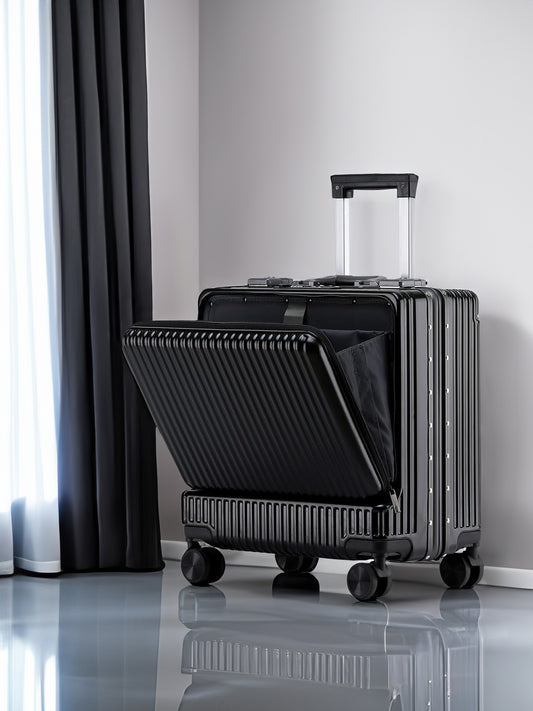 THE CLOWNFISH JetSetter Series Carry-On Luggage PolyCarbonate Hard Case Suitcase Eight Spinner Wheel 14 inch Laptop Trolley Bag with TSA Lock & USB Charging port- Black (47 cm-18.5 inch)