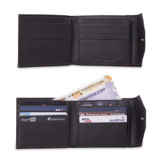 THE CLOWNFISH RFID Protected Genuine Leather Wallet for Men with Multiple Card Slots (Dark Brown)