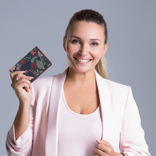 Glamour Fold Passport Wallet - Lightweight, Compact, Spacious | Card Holder | Bi-Fold | Navy Blue Floral