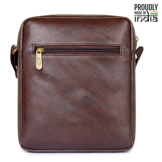 The Cherish Faux Leather Unisex Crossbody Sling Bag Tablet Bag (Dark Brown)
