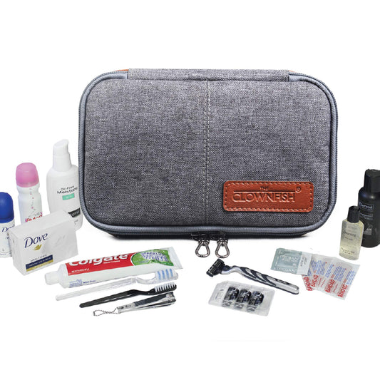 THE CLOWNFISH Men's And Women's Fabric And Modern Travel Pouch Toiletry Shaving Kit Bag (Grey, 2L)