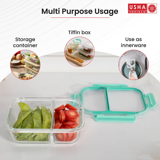 The Better Home Borosilicate Glass Compartment Lunch Box | Tiffin Box for Office for Men Women | Microwave Safe Leak Proof Airtight Lunch Boxes (1Pc - 1L)