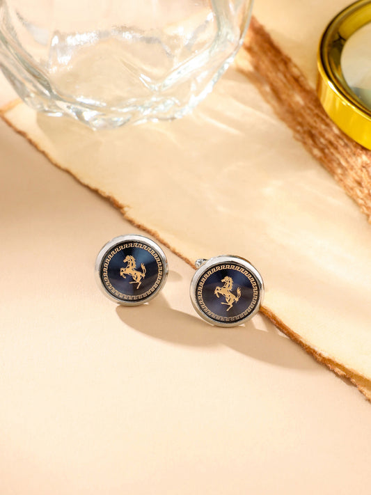 Cufflinks for Men and Boys Blue Cuff links | Formal Stainless Steel Golden Running Horse Cufflink | Birthday Gift for Men and Boys Anniversary Gift for Husband