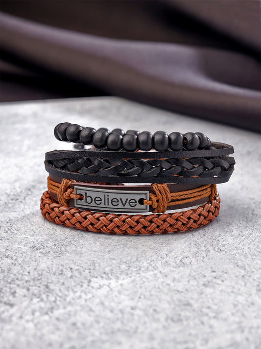 4pcs Inspirational Message 'Believe' Unisex Multi Strand Bracelet for Men (Brown, Black) (YCFJBR-106BELIV-BR)