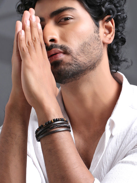 Bracelets for Men and Boys Leather Bracelet Set for Men Multi Layered Leather Wrap Wrist Bracelet | Birthday Gift for Men & Boys Anniversary Gift for Husband (Design 14)