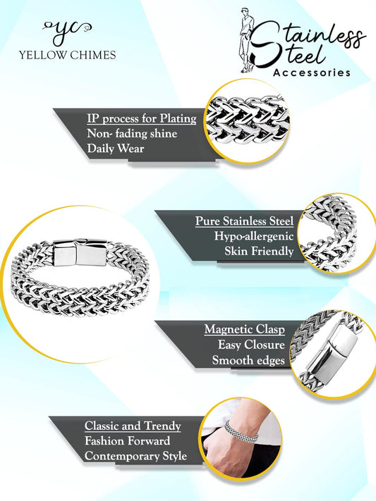 Bracelets for Men and Boys Fashion Silver Bracelet for Men |Silver Toned Durable Stainless Steel Chain Bracelet for Men | Birthday Gift for Men and Boys Anniversary Gift for Husband