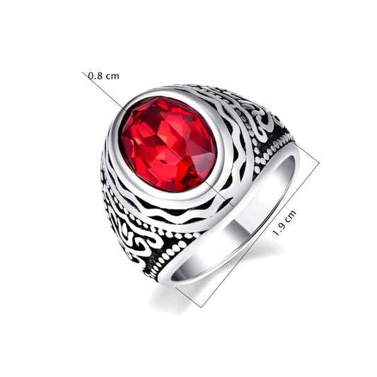 Rings for Men Stainless Steel Ring Red Crystal Carved Design Ring for Men and Boys.