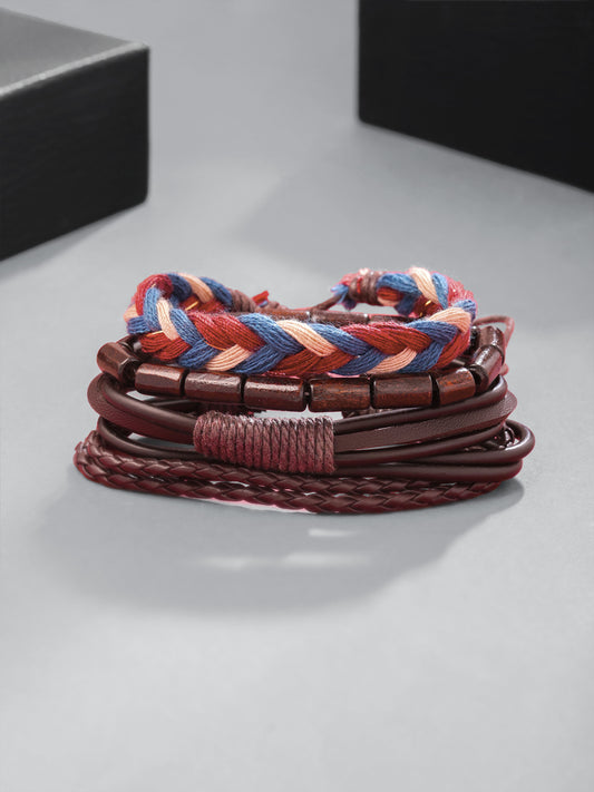 Leather Bracelet for Men 4 Pcs Combo PU Leather Brown Wrap Bracelet for Men and Women.