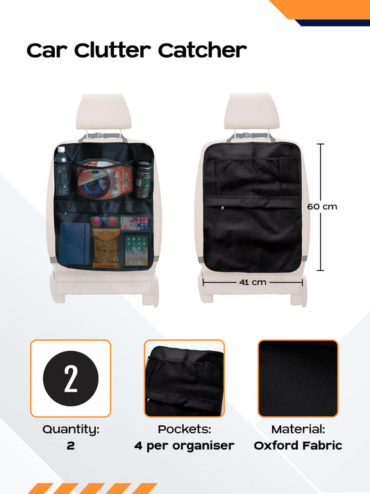 CARBINIC Car Seat Organisers - Car Travel Organizer Multi Pocket Storage for Bottles, Toys Car Accessories with iPad/Mobile/Tablet Holder | Pack of 2 | Black | Oxford Fabric