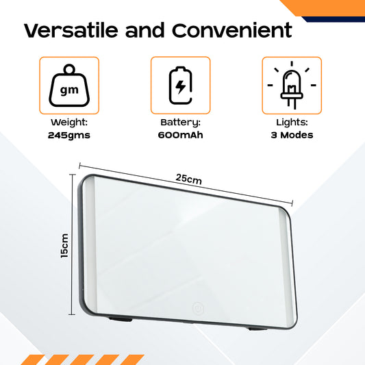 CARBINIC Car Visor Vanity Mirror, Makeup Mirror with 3 Light Modes & 24 LEDs | Dimmable Touch Screen | Rechargeable Mirror with Type C Cable | Passenger Car Interior Accessories, Universal for Car SUV