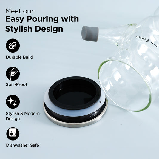 UMAI Glass Oil Dispenser With Leakproof Steel Lid (800ml) | Oil Container Bottle For Kitchen | Oil Jar | Vinegar Dispenser | Glass Oil Bottle | Oil Can For Kitchen