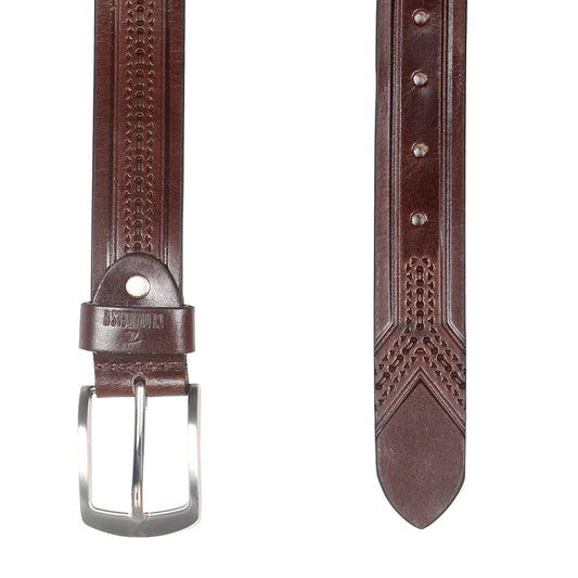 THE CLOWNFISH Men's Genuine Leather Belt with Embossed Design - Dark Chocolate (Size - 36 inches)