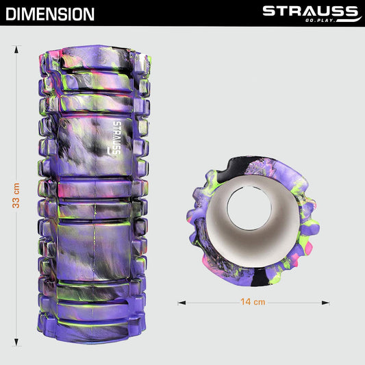 Strauss Deep Tissue Massage Foam Roller|High-Density Muscle Roller for Physical Therapy, Yoga, Pilates|Exercise Equipment for Deep Tissue Massage and Muscle Relief|45cm,(Multicolor Purple)
