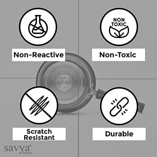 Savya Home Hard Anodized Aluminum Sauce Pan with Stainless Steel Lid | Non-Toxic, Non-Reactive, Durable & Scratch Resistant | Gas stove & Induction Cookware Set (1.6 L)