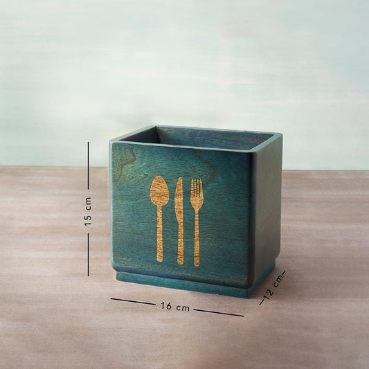 Blue Wood Utensil Holder| Spoon, Knife, Fork, Chopstick, Cutlery Holder/Organizer Stand for Kitchen & Dining Table| Multifunctional Spoon Stand | Handcrafted Table Organizer