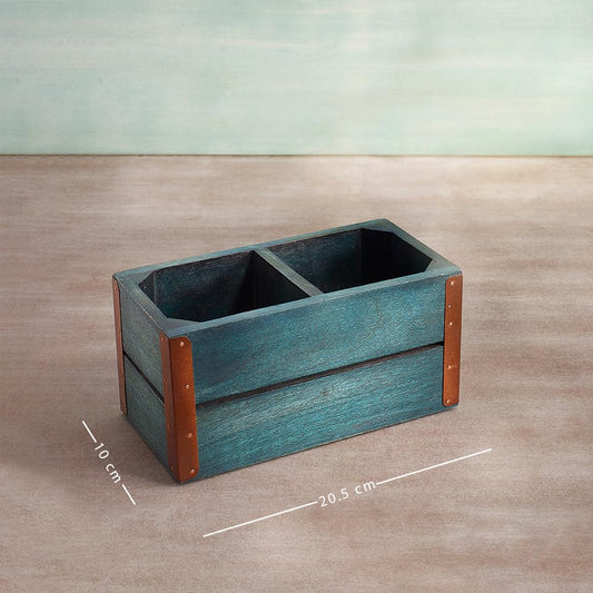 Blue Wood Cutlery Holder - Handcrafted Modern Organizer for Kitchen & Dining | 8x4x4 In | Cobalt Finish