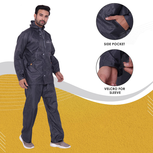 THE CLOWNFISH Rain Coat for Men Waterproof Raincoat with Pants Polyester Reversible Double Layer Rain Coat For Men Bike Rain Suit Rain Jacket Suit Inner Mobile Pocket with Storage Bag (Grey XXL)