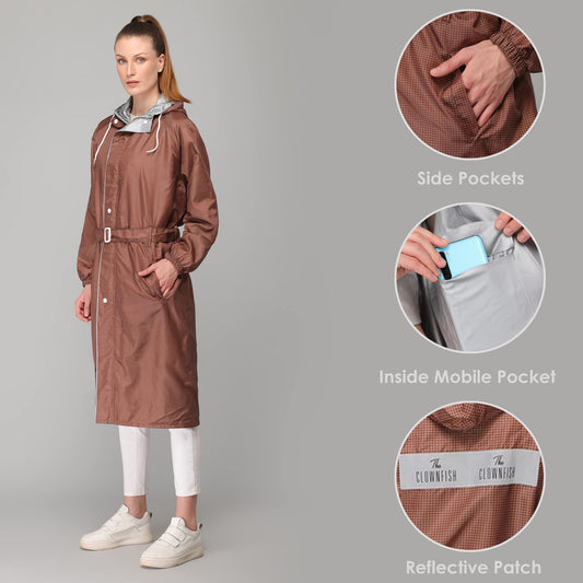THE CLOWNFISH Raincoats for Women Raincoat for Ladies Waterproof Reversible Double Layer. Drizzle Diva Series (Brown, XX-Large)