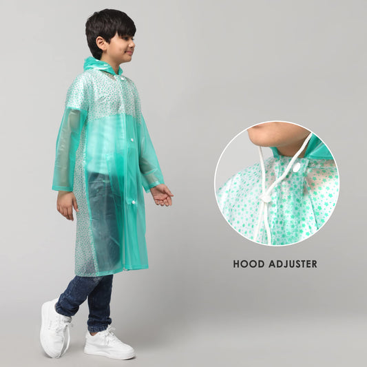 THE CLOWNFISH Drip Dude Series Unisex Kids Waterproof Single Layer PVC Longcoat/Raincoat with Adjustable Hood. Age-4-5 Years (Aqua Green)