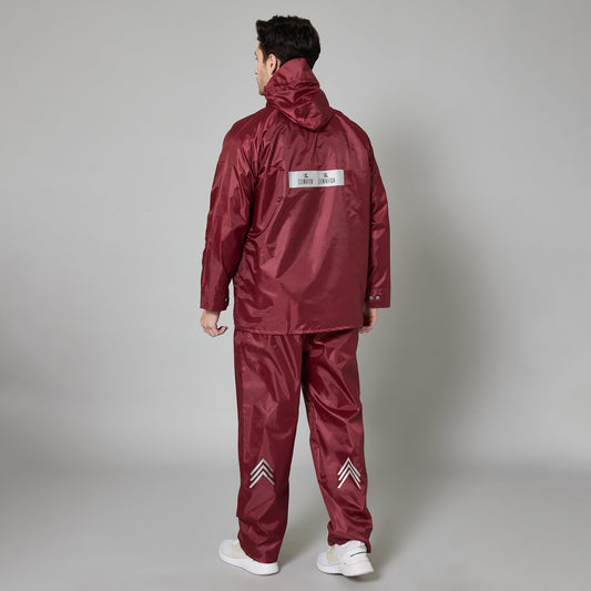 THE CLOWNFISH Rain Coat for Men Waterproof Raincoat with Pants Polyester Reversible Double Layer Rain Coat For Men Bike Rain Suit Rain Jacket Suit Inner Mobile Pocket with Storage Bag (Maroon XL)