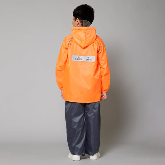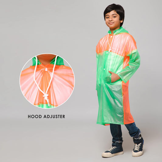 THE CLOWNFISH Wet & Wild Series Unisex Kids Waterproof Single Layer PVC Longcoat/Raincoat with Adjustable Hood. Age-4-5 Years (Light Orange)