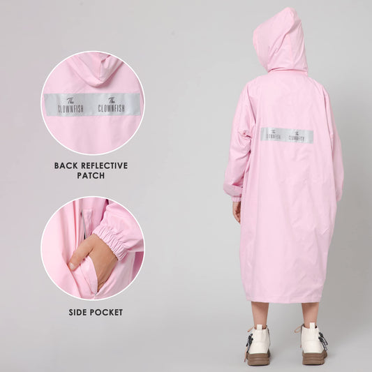 THE CLOWNFISH Cloud Chaser Series Kids Raincoat Waterproof Polyester Double Coating Reversible Longcoat with Hood and Reflector Logo at Back. Printed Plastic Pouch. Kid Age-13-14 years (Blush Pink)