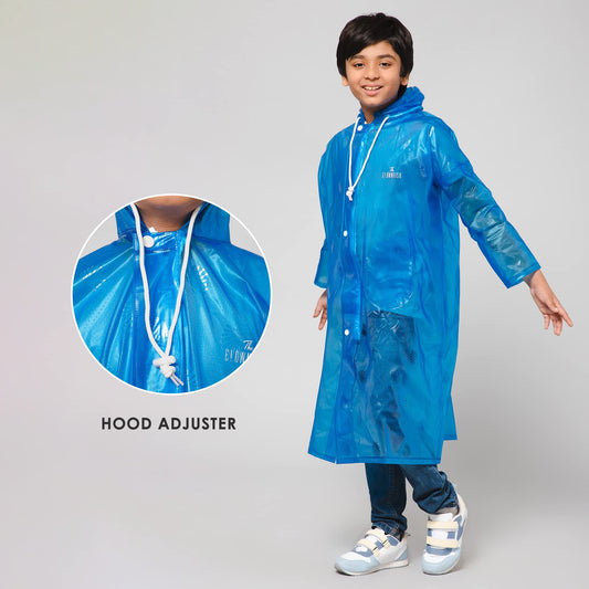 THE CLOWNFISH Wet & Wild Series Unisex Kids Waterproof Single Layer PVC Longcoat/Raincoat with Adjustable Hood. Age-4-5 Years (Royal Blue)