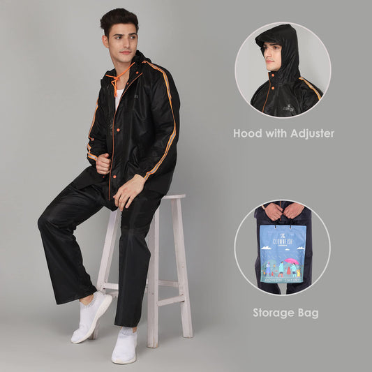 THE CLOWNFISH Rain Coat for Men Waterproof for Bike Raincoat for Men with Hood. Set of Top and Bottom. Debonair Series (Orange, X-Large)
