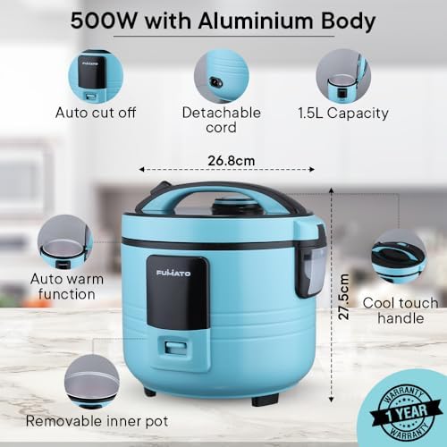 FUMATO Cookeasy Automatic 500W Electric Rice Cooker 1.5L Blue & Stainless Steel Water Bottle 1 Litre Blue