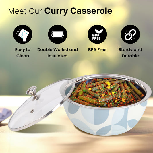 Serving Casserole 2.5L: Insulated Hot Box for Curry & Rice | Round | Geometric Pattern