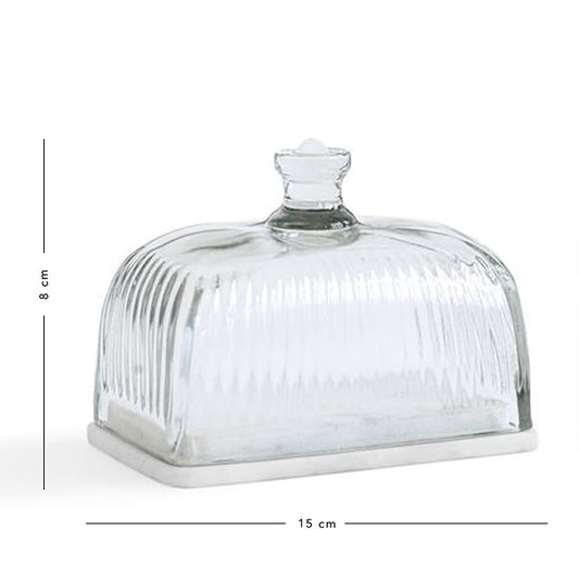 Crown Glass and Marble Butter Dish| Butter Keeper with Lid | Serving Tray | Marble Trays for Kitchen & Home Decor | Butter Storage Container | Butter Dish with Cover