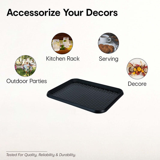 Set of 2: Plastic Rectangular Serving Trays - BPA Free, Stainproof | Kitchen & Outdoor Use | 2.1cm H x 45cm W