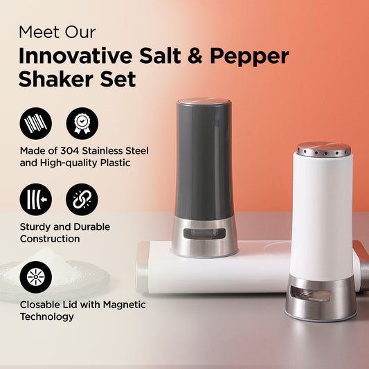 Salt and Pepper Container (60ml) | Salt Pepper Set for Dining Table | Salt Pepper Sprinkler | Magnetic Base | Salt Containers for Dining Table | Black and White | Salt Holder for Dining Table