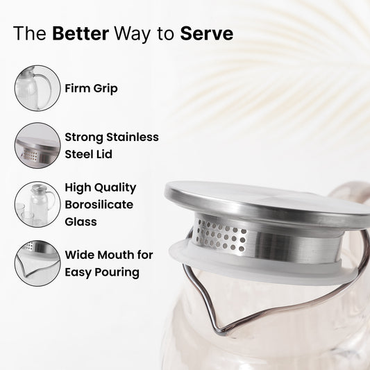 UMAI Borosilicate Glass Water Jug with Airtight Lid | Glass Jar for Water with Handle | Glass Jug for Water | Water Jugs for Dining Table | Detox Water Jar | Water Jar (1.5L (no Handle))