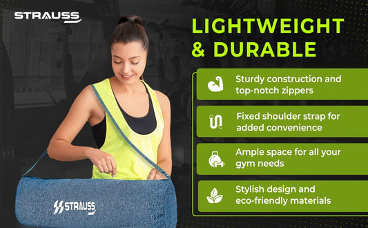 Strauss Jute Duffel Bag | Travel & Gym Bag | Eco-Friendly, Washable & Durable Bags for Men & Women | Fitness & Sports Accessories Holder | Suitable for Yoga,Workout,Pilates,Gym,Travelling(Blue)