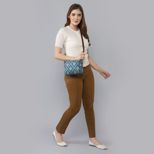 The Nyra Polyester Crossbody Sling Bag for Women Casual Party Bag Purse with Adjustable Shoulder Strap and Printed Design for Ladies College Girls (Blue)
