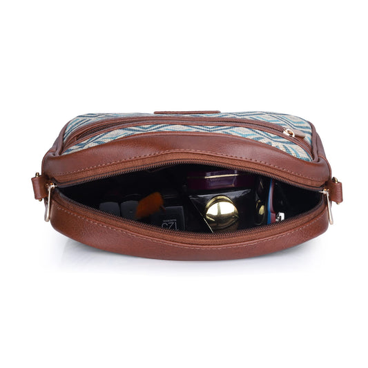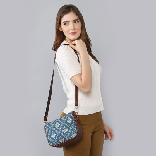 THE CLOWNFISH Isla Printed Handicraft Fabric Crossbody Sling bag for Women Casual Party Bag Purse with Adjustable Shoulder Strap and Printed Design for Ladies College Girls (Blue)