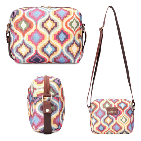 THE CLOWNFISH Isla Printed Handicraft Fabric Crossbody Sling bag for Women Casual Party Bag Purse with Adjustable Shoulder Strap and Printed Design for Ladies College Girls (Multicolour)