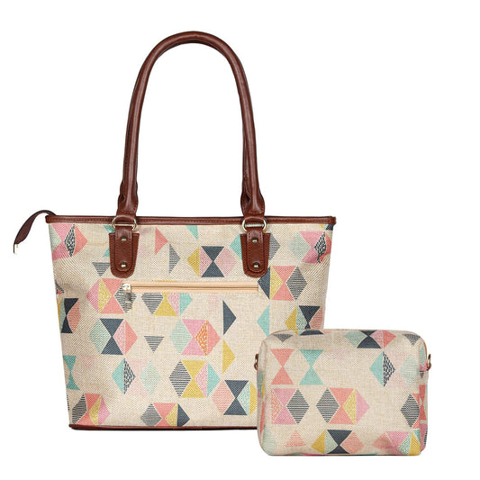 THE CLOWNFISH Combo Of Percy Printed Handicraft Fabric Handbag for Women Isla Printed Handicraft Fabric Crossbody Sling bag for Women (Multicolour)