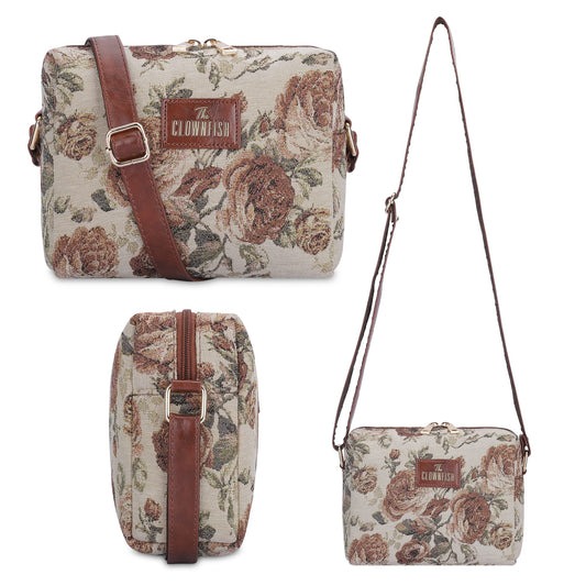 THE CLOWNFISH Garnet Series Printed Handicraft Fabric & Tapestry Crossbody Sling Bag for Women Ladies Single Shoulder Bag Shoulder Belt (Multicolour)