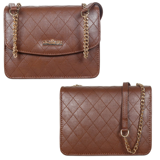 THE CLOWNFISH Elora Crossbody Sling bag for Women Office Bag Purse with Chain Strap for Ladies College Girls (Tan)
