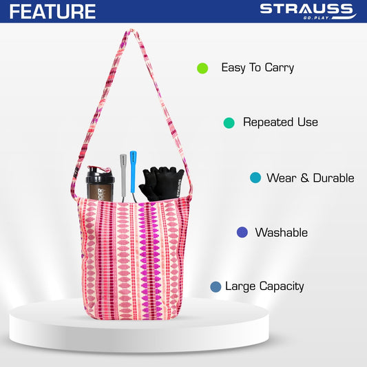 Strauss Jacquard Multipurpose Bag | for Both Men and Women |Breathable, Durable and Long- Lasting| Suitable for Travel, Gym and Yoga Classes| Eco- Friendly and Washable |(Red Pattern)